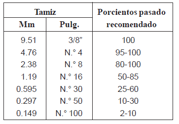 arena tenga un contenido de finos, superior al